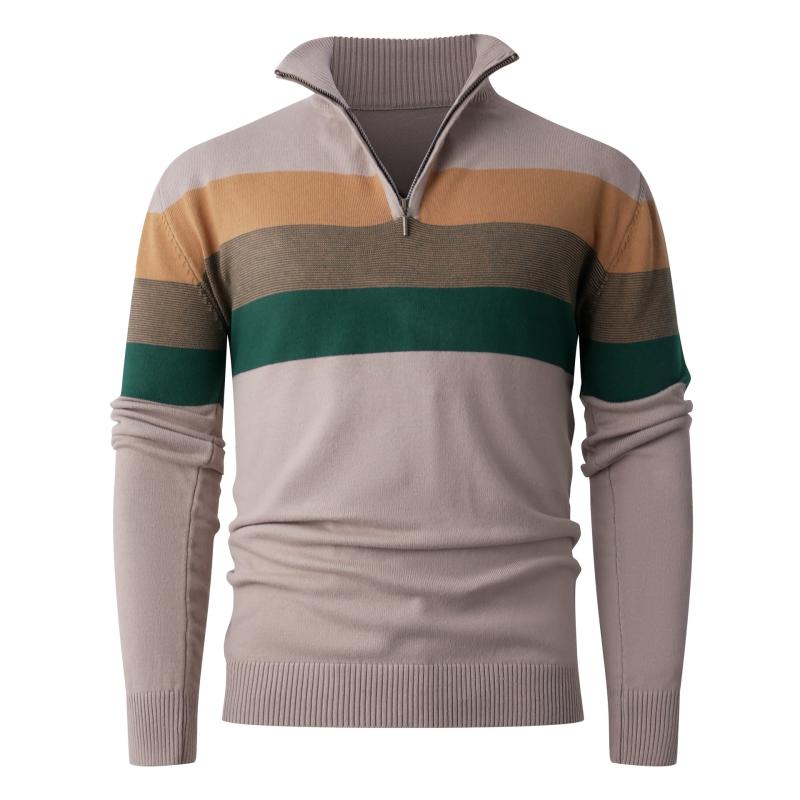 秋冬 メンズ ニットセーター カジュアル ハーフジッパー スタンドカラー 切り替え プルオーバー 休闲 男士 毛衣