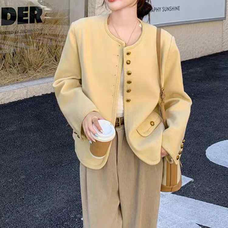 レディース テーラード ジャケット 黄色 春秋 スタイリッシュ エレガント 高級感 質感 6ボタン レトロ クラシック 中華風 オリエンタル ニッチ ユニーク デザイン