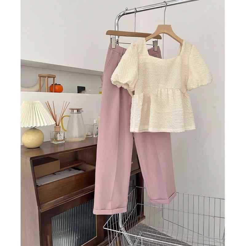 レディース アップコーデ 大人かわいい 夏 トップス ワイドレッグパンツ セットアップ レディース