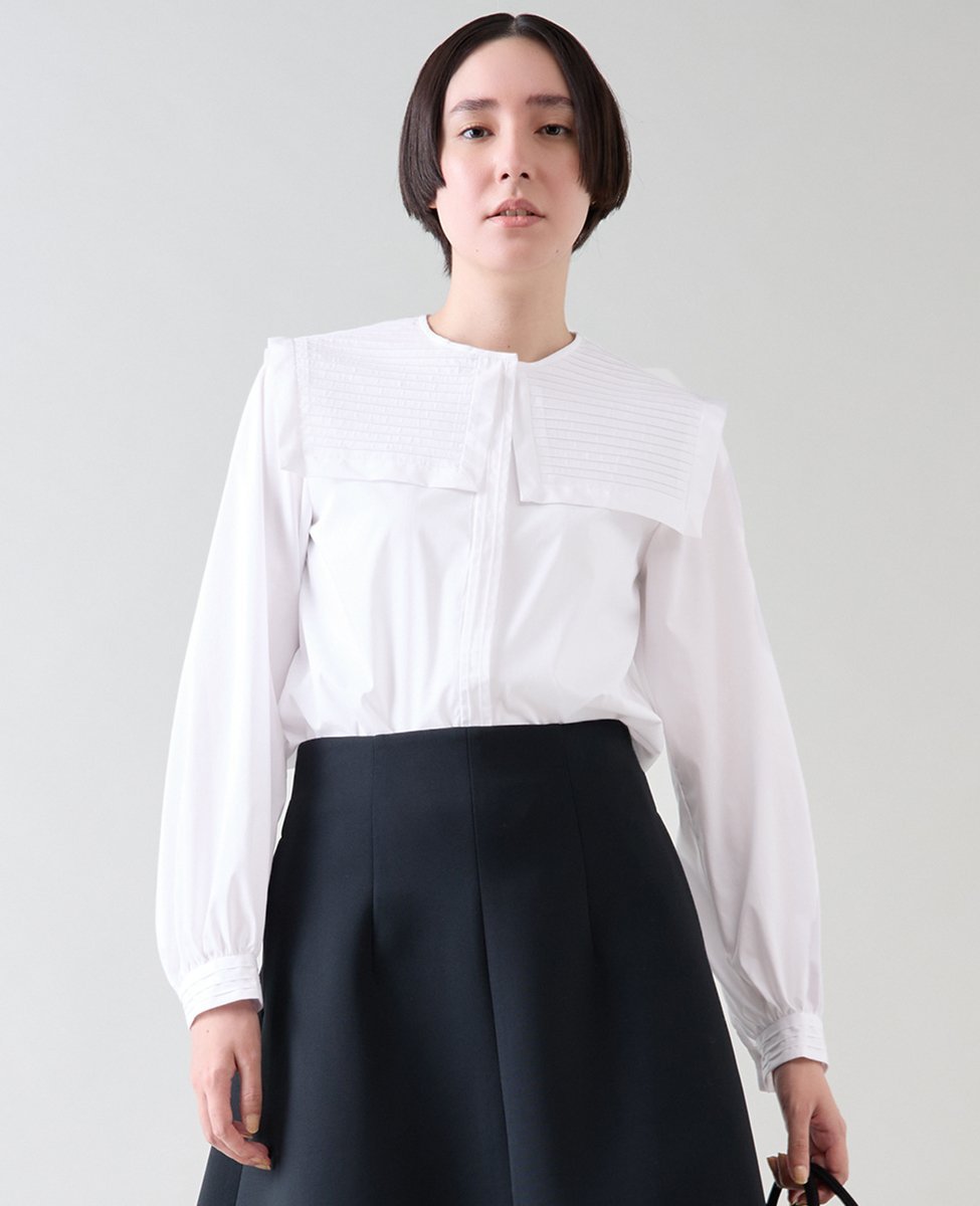 【SALE/50%OFF】martinique ピンタックカラーブラウス マルティニーク トップス シャツ・ブラウス ホワイト ブラック【送料無料】