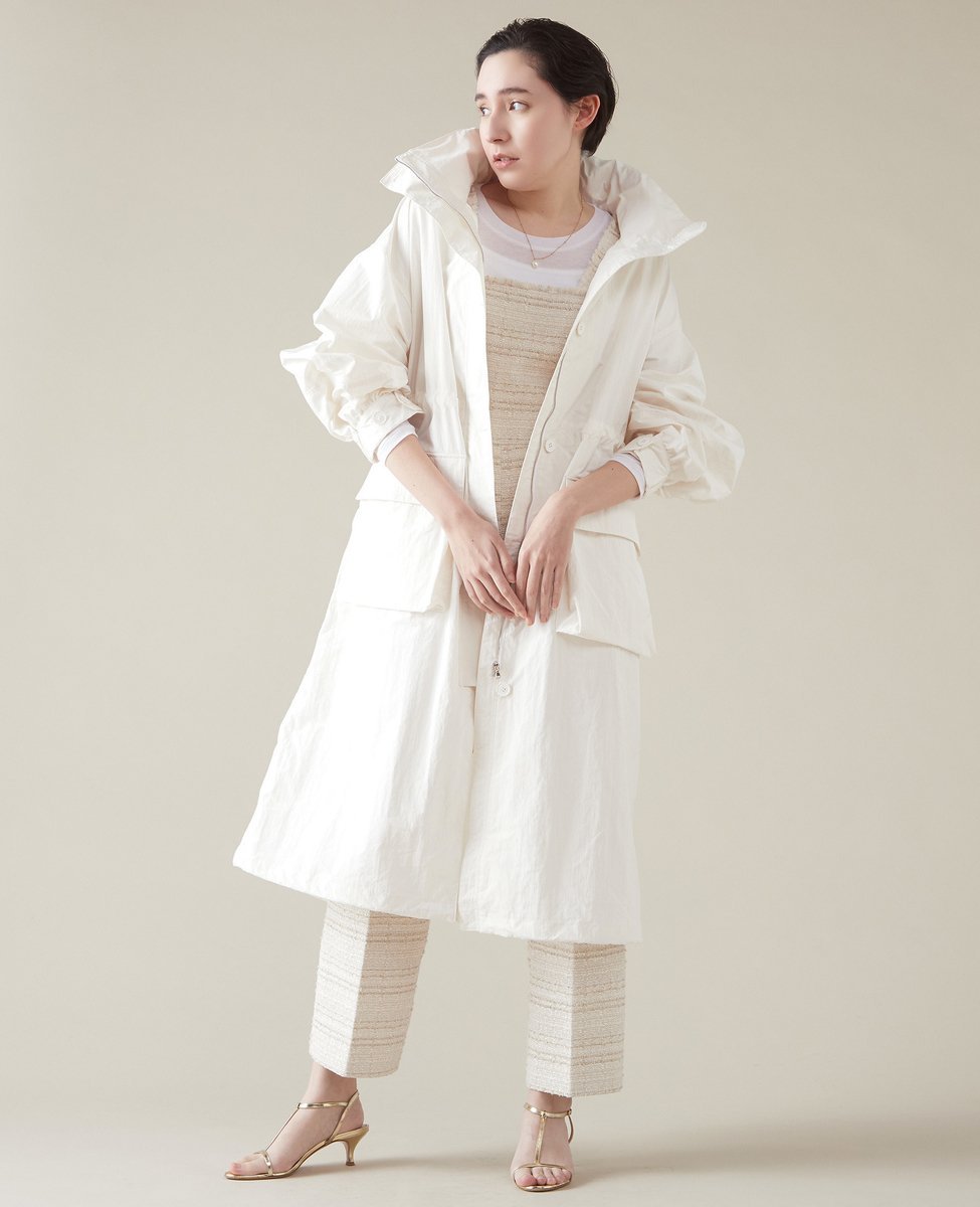 martinique(マルティニーク)フーデットコートリサイクルナイロンを使ったミニリップストップの生地です。ポリエステルとナイロンの糸に特殊な加工を施し、ふくらみとしなやかさを与えたタフタです。今年らしいスポーティーさをミニリップストップで表現しました。収納可能なフード付きのオーバーコート。ウエストにドロストが入っているので、小柄な方でもバランスのとりやすいオーバーサイズ感です。フードは出しても良いですし、襟の中にしまう事も可能です。カジュアルになりすぎず、女性らしいカジュアルな雰囲気です。型番:A0341FC220-01-9 KB9481【採寸】サイズ肩幅身幅着丈そで丈ゆき丈そで周りFREE6065112.3518126.5商品のサイズについて【商品詳細】中国素材:ナイロン59%ポリエステル41%サイズ:FREE※画面上と実物では多少色具合が異なって見える場合もございます。ご了承ください。商品のカラーについて 【予約商品について】 ※「先行予約販売中」「予約販売中」をご注文の際は予約商品についてをご確認ください。■重要なお知らせ※ 当店では、ギフト配送サービス及びラッピングサービスを行っておりません。ラッピング・ギフト配送について同時に複数の商品を注文された場合メーカー希望小売価格についてご利用ガイドmartinique(マルティニーク)フーデットコートリサイクルナイロンを使ったミニリップストップの生地です。ポリエステルとナイロンの糸に特殊な加工を施し、ふくらみとしなやかさを与えたタフタです。今年らしいスポーティーさをミニリップストップで表現しました。収納可能なフード付きのオーバーコート。ウエストにドロストが入っているので、小柄な方でもバランスのとりやすいオーバーサイズ感です。フードは出しても良いですし、襟の中にしまう事も可能です。カジュアルになりすぎず、女性らしいカジュアルな雰囲気です。型番:A0341FC220-01-9 KB9481【採寸】サイズ肩幅身幅着丈そで丈ゆき丈そで周りFREE6065112.3518126.5商品のサイズについて【商品詳細】中国素材:ナイロン59%ポリエステル41%サイズ:FREE※画面上と実物では多少色具合が異なって見える場合もございます。ご了承ください。商品のカラーについて
