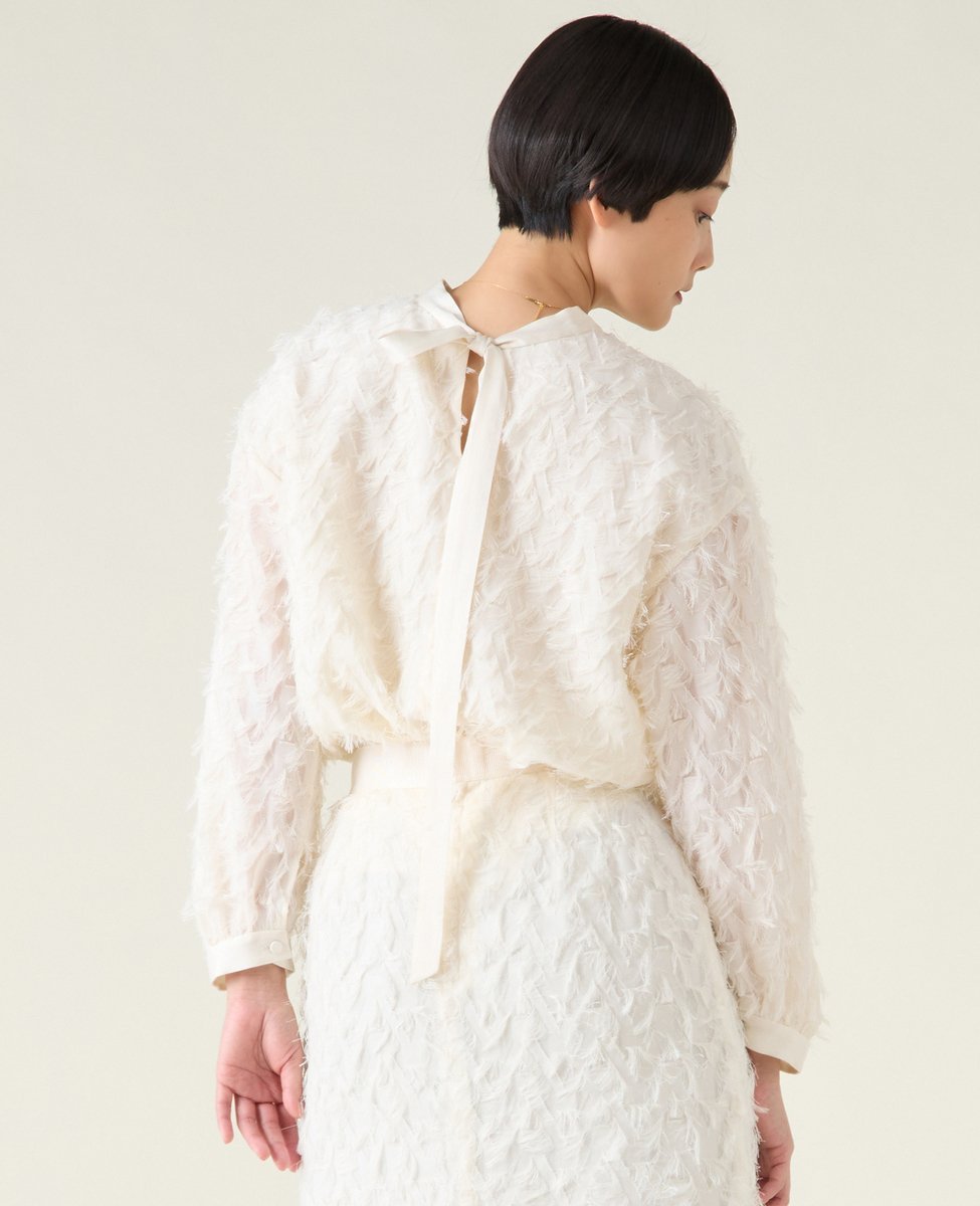martinique(マルティニーク)つっきりジャガードブラウス(セットアップ可)≪デザインポイント≫華やかな表情のオリジナルのジャガード素材を使用したスタンドカラーのブラウスです。前後で着用可能で、後ろを前にして着用するとリボンタイ付きのデザインに。≪素材・着心地≫透け感のある基布に光沢のある糸でフリンジジャガードを施しました。≪おすすめの着こなし≫同素材のSKとセットアップで。透け感:なし伸縮性:ややあり光沢感:ややあり裏地:袖裏のみ生地の厚さ:やや薄い型番:A0351FB052-01-9 NH4722【採寸】サイズ肩幅身幅着丈そで丈そで周りFREE5153605044商品のサイズについて【商品詳細】中国素材:ポリエステル100%サイズ:FREE※画面上と実物では多少色具合が異なって見える場合もございます。ご了承ください。商品のカラーについて 【予約商品について】 ※「先行予約販売中」「予約販売中」をご注文の際は予約商品についてをご確認ください。■重要なお知らせ※ 当店では、ギフト配送サービス及びラッピングサービスを行っておりません。ラッピング・ギフト配送について同時に複数の商品を注文された場合メーカー希望小売価格についてご利用ガイドmartinique(マルティニーク)つっきりジャガードブラウス(セットアップ可)≪デザインポイント≫華やかな表情のオリジナルのジャガード素材を使用したスタンドカラーのブラウスです。前後で着用可能で、後ろを前にして着用するとリボンタイ付きのデザインに。≪素材・着心地≫透け感のある基布に光沢のある糸でフリンジジャガードを施しました。≪おすすめの着こなし≫同素材のSKとセットアップで。透け感:なし伸縮性:ややあり光沢感:ややあり裏地:袖裏のみ生地の厚さ:やや薄い型番:A0351FB052-01-9 NH4722【採寸】サイズ肩幅身幅着丈そで丈そで周りFREE5153605044商品のサイズについて【商品詳細】中国素材:ポリエステル100%サイズ:FREE※画面上と実物では多少色具合が異なって見える場合もございます。ご了承ください。商品のカラーについて