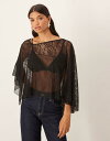 【送料無料】 エイソス レディース Tシャツ トップス ASOS DESIGN asymmetric sheer lace cape top in black Black