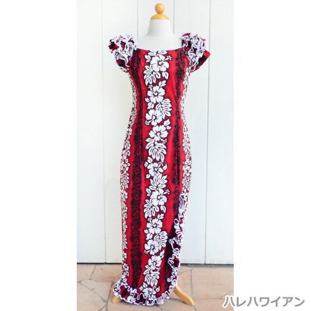 在庫処分セール ハワイアン ムームー デザイン of Naomi スリット ロングドレス 【 ハイビスカス パネル 】レッド