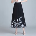 ガウチョパンツ レディース 春夏 薄手 通気性 吸湿性 クロップド ゆったり ワイドレッグ ドレープ シフォン 着痩せ 体型カバー きれいめ 大きいサイズ 花柄 白 ピンク