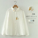 シャツ 花柄 ガーゼシャツ 長袖 シャツブラウス 刺繍 シャツ 綿100% レディース 秋 春 ブラウス ナチュラ ダブルガーゼ トップス