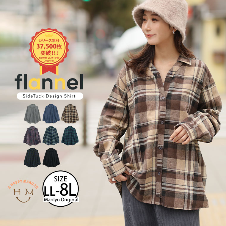 【期間限定クーポン配布】 大きいサイズ レディース ブラウス | フランネルチェック サイドタックシャツ ブラウス デニム 起毛 _ トップス LL 3L 4L 5L 6L 7L 8L 長袖 秋 秋物 秋服 冬 冬物 冬服 ぽっちゃり ゆったり プラスサイズ お腹 胸周り 腰周り [478127]