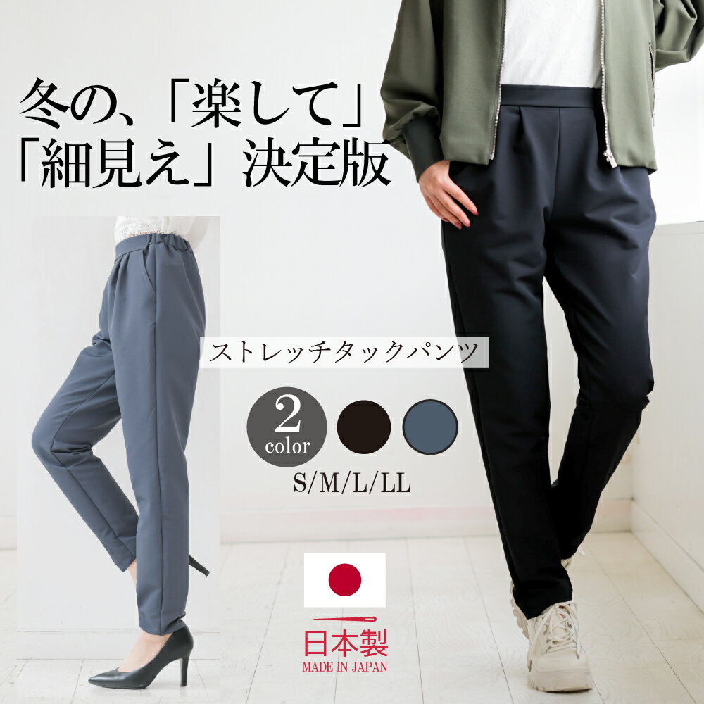 ブラックフライデー★最大15%OFF★11/27 1:59迄 [日本製 送料無料] 裏起毛 ストレッチ パンツ タック 伸縮性 カジュアル レディース ボトムス 防寒 楽々 普段着 オフィス 通勤 ビジネス スポーツ 秋 冬 暖かい 着やせ 細見え 防寒 レディースパンツ 極暖 セットアップ
