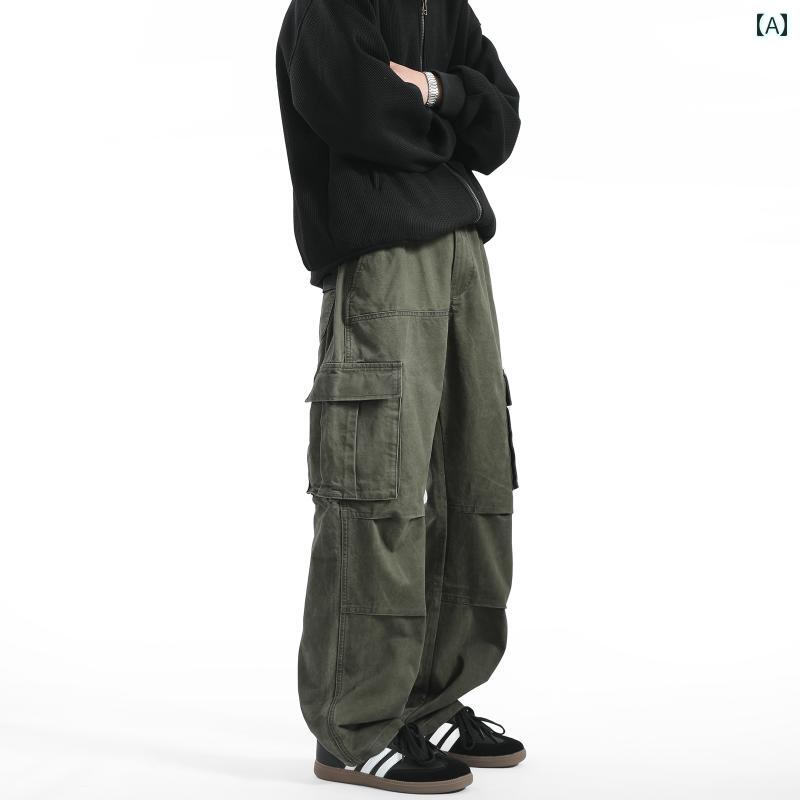 ワイドレッグ パンツ レディース RAVEN OASIS アメリカン レトロ ストリート マルチ ポケット オーバー オール メンズ レディース クリーン フィット カジュアル パンツ