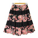 【中古】スタイルオペレーション Style operation スカート ティアード 縮絨 ちりめん 和柄 花柄 切替 ミモレ丈 M 黒 ブラック マルチカラー レディース 【ベクトル 古着】 250804