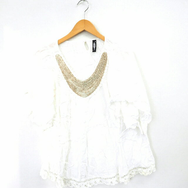 【中古】style operation シャツ カジュアル レース Vネック 五分袖 コットン 綿 F オフホワイト /MT48 レディース 【ベクトル 古着】 210602