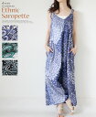 【9/2再入荷】サロペット オールインワン ノースリーブ ワイドパンツ エスニック オリエンタル アジアン 肩リボン レディース ファッション 大人ナチュラル カジュアル 「エスニックな風合いを愉しむワイドサロペット」