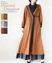 ワンピース オリエンタル エスニック柄 カシュクール Vネック ふんわり袖 レディース ファッション 大人ナチュラル カジュアル 羽織り ロング丈「羽織りにもなる オリエンタルな風合い カシュクールワンピース」