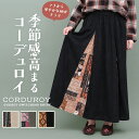 コーデュロイマチ切替スカート / ロングスカート 柄切り替え ボトムス レディース 秋 冬 ウエストゴム ロング丈 Aライン ペイズリー 幾何学柄 パッチワーク柄 オリエンタル ベージュ ブラック カーキ フォークロア カジュアル エスニック チチカカ TITICACA