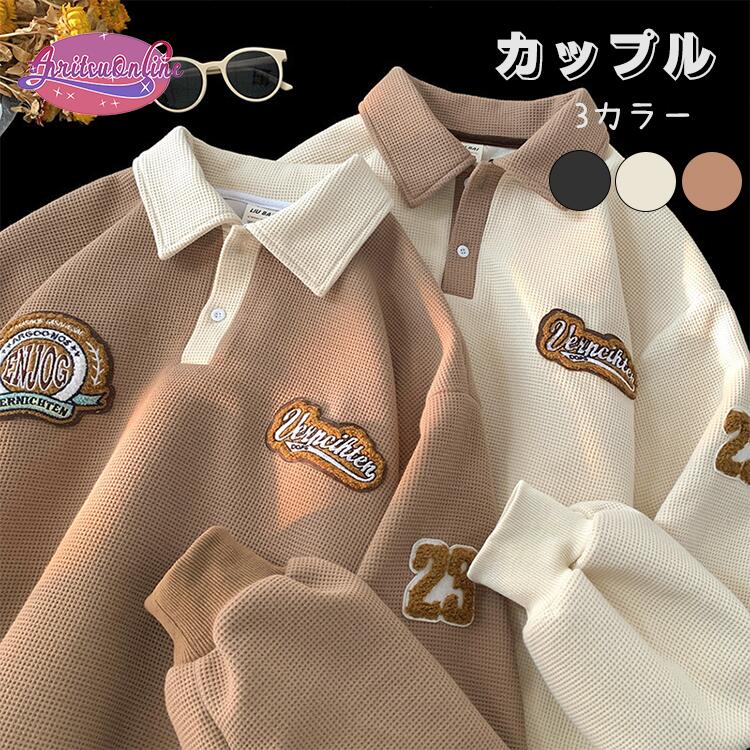 ペアルック カップル トレーナー パーカー 夫婦 恋人 春夏 秋 かわいい 若い カジュアル ペアルック ペア お揃い 長袖 カップル お揃い 服 レディース メンズ 男女 ペア カップル ペアルック セットアップ ロング丈 トップス 半開襟 刺繡 韓国風 おしゃれ polo プレゼント