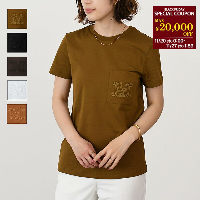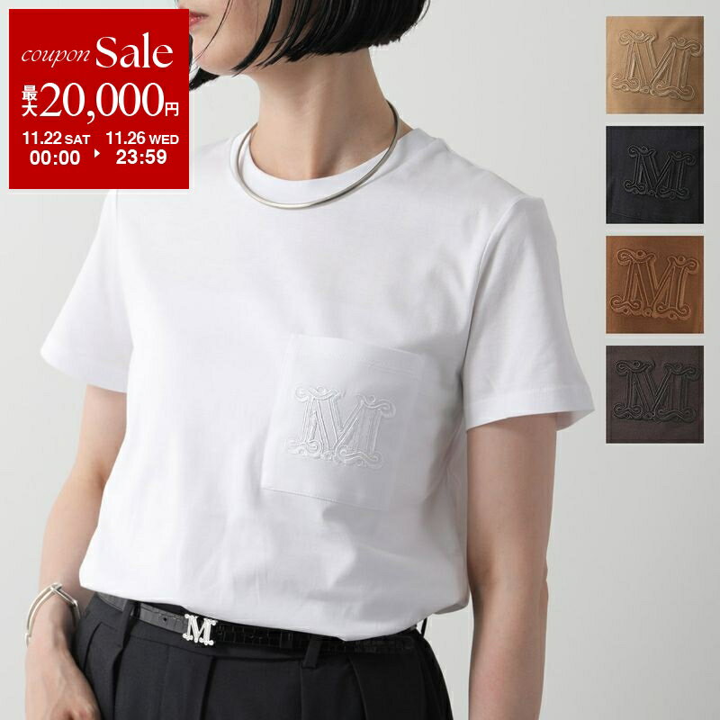 【限定クーポン配布中】Max Mara マックスマーラ トップス Tシャツ PAPAIA1 ポケット付きコットンTシャツ レディース ブラック ホワイト ブラウン ベージュ コットン 刺しゅう 半袖 春夏 きれいめ_m 0717st1 0717st2 sstmcp
