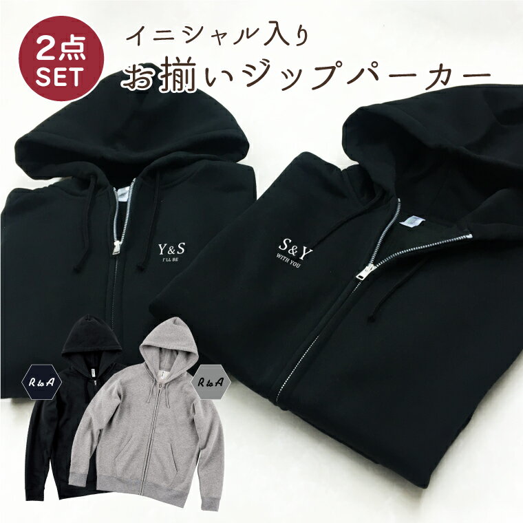 送料無料 2点セット ペアルック イニシャル入り パーカー 厚手 裏起毛 胸元プリント ジップパーカー ペアパーカー お揃い 友達 ペア ギフト 誕生日プレゼント レディース メンズ カップル服 ギフトセット ペアギフト 秋冬 結婚祝い 新婚 夫婦 恋人 彼氏 彼女 記念 カップル