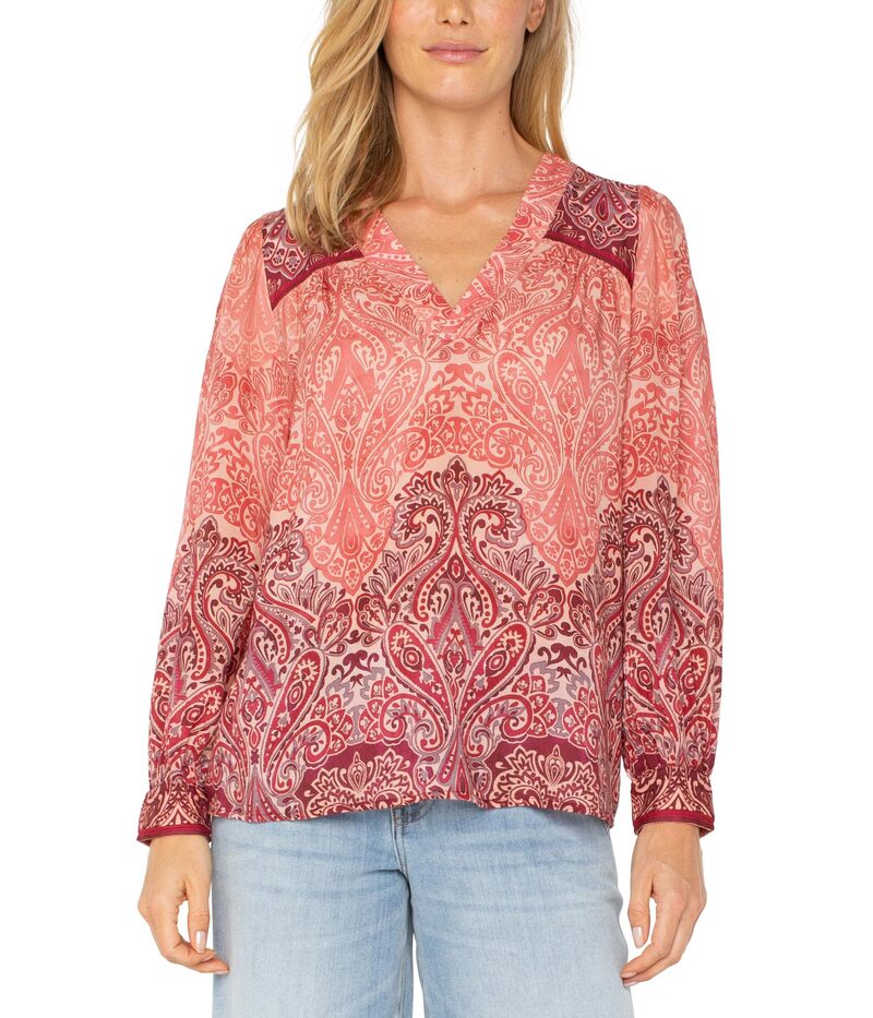 リヴァプール ロサンゼルス レディース トップス シャツ Vネック ブラウス Liverpool Los Angeles Long Sleeve V-neck Popover Woven Blouse Mauve Ombre Pai
