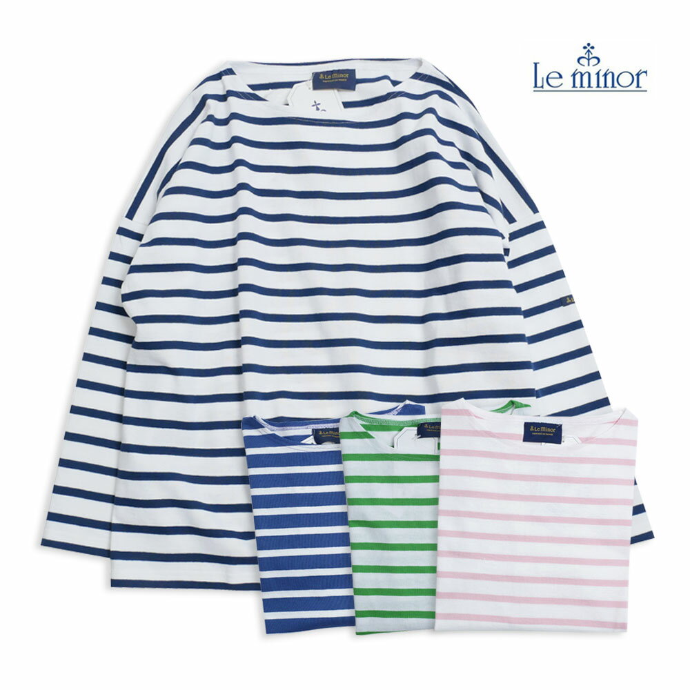 【10%OFFセール】Le minor ルミノア PETIT COPAIN プチコパン レディース ボーダー 長袖 カットソー ドロップショルダー ロンT ホワイト×ローズピンク ブルー×ホワイト ホワイト×グリーン ホワイト×ネイビー TF 20jg70304