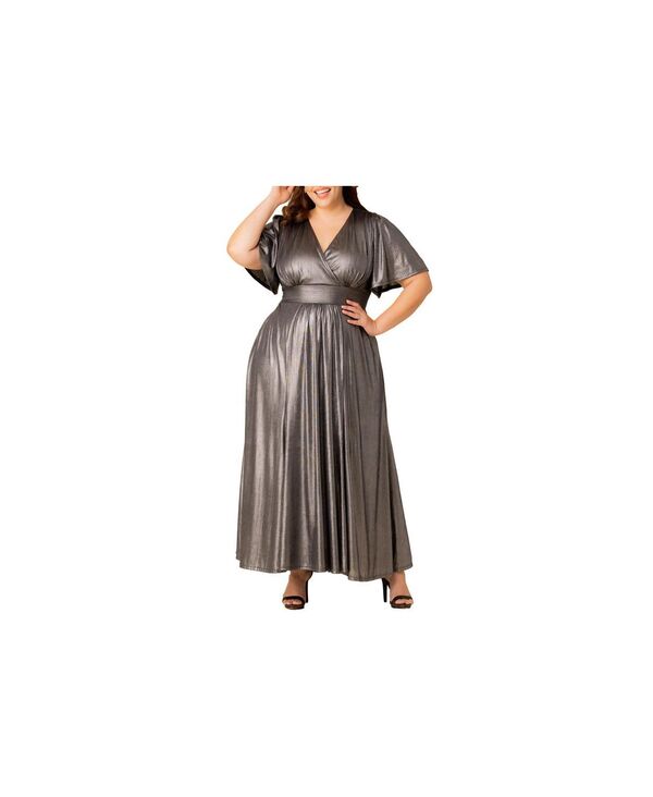 キヨナ レディース トップス ワンピース プラスサイズ トール Kiyonna Plus Size Evania Metallic Evening Gown Pewter ピューター