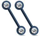 【中古】【輸入品・未使用】Pierced Owl チタン IP ダブルキュービックジルコニア ニップルバー バーベルリング 14G 316L ステンレススチール ペアで販売