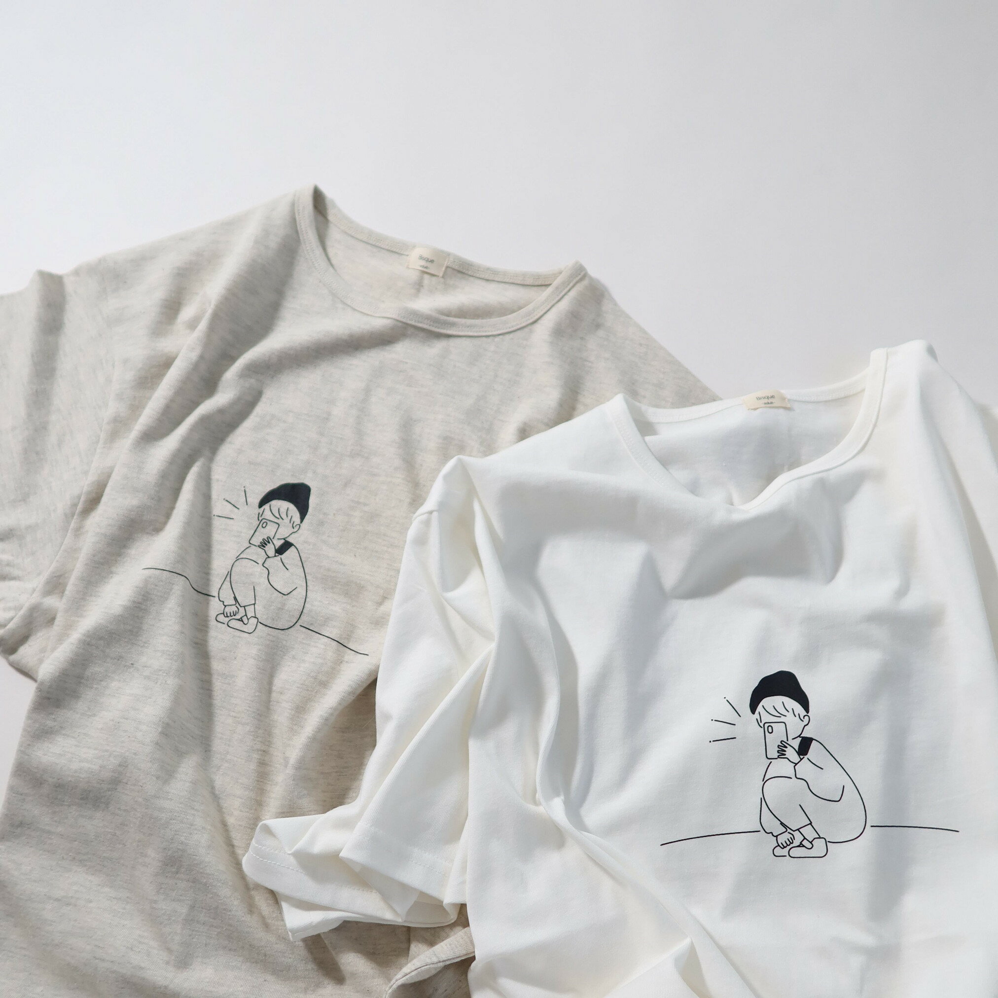 →こどもサイズはこちら← びすくオリジナル 大人気の線画イラストのTシャツ^^ スマホで写真を撮っているイラスト◎ 1着でコーディネートのポイントになります! 着ると生地が泳ぐほどの ゆったりサイズ。 パパも大人気ですよ! 風遠いのよいさらっとした カットソーを使用。 1つ1つ丁寧にこだわった 他のどこにもない1着です?? こどもサイズもご用意しています! 親子リンクコーデにぜひ^^ ” summer collection ” 【size】 着丈69.5、身幅63、袖丈23 【color】 ホワイト オートミール コットン100