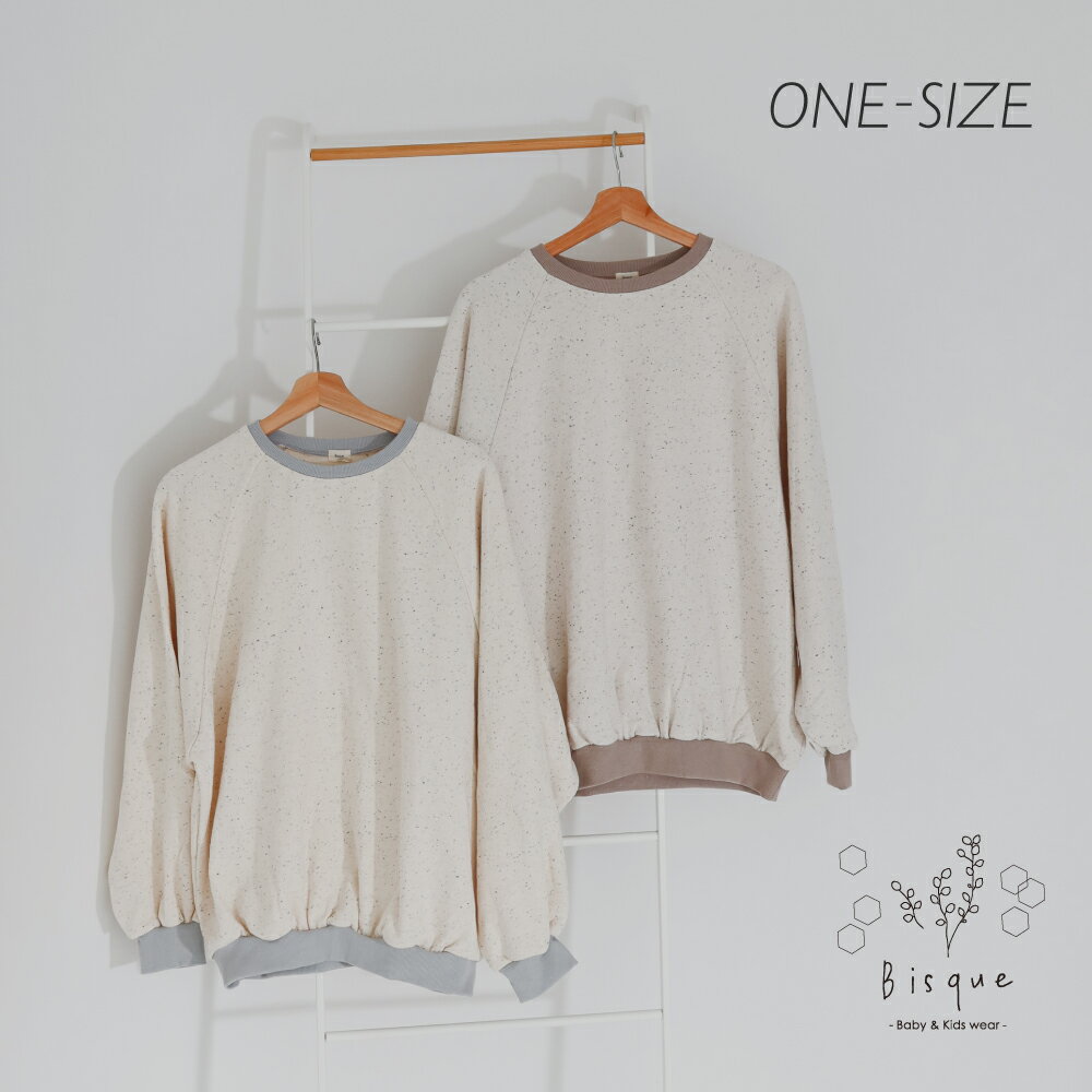 おとな)バイカラーつぶつぶスウェット Bisque びすく 韓国子供服 ビスク ママ パパ レディース メンズ 大人 ナチュラル シンプル おしゃれ かわいい カジュアル トップス トレーナー スウェット 長袖 コットン お揃いコーデ 親子リンクコーデ ナチュラルカラー プレゼント