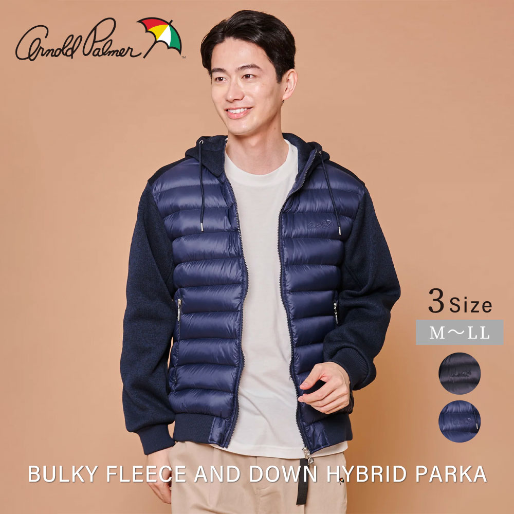 【公式】 送料無料 アーノルドパーマー バルキーフリース × ダウン ハイブリッド パーカー メンズ ブラック ネイビー シンプル カジュアル 秋 冬 パパ 仕事 通勤 通学 公園 23aw