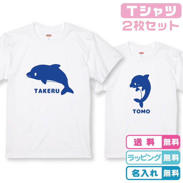 【親子ペアtシャツ】名入れ無料 2枚セット パパいるか+こどもイルカTシャツホワイト 半袖 プリントカラー全6色 綿100% 誕生日Tシャツ 記念日 出産ギフト 誕生日ギフト 親子ペア 親子Tシャツ 家族お揃いTシャツ 親子ペアルック 家族コーデ