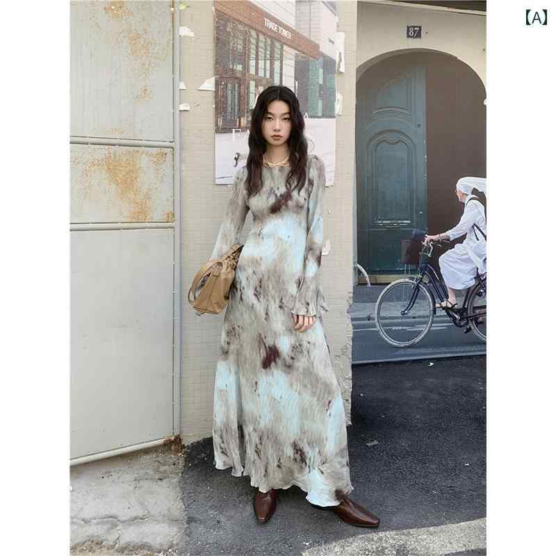 ロングスカート ドレス レディース BaiYaShan / Bai Yashan フランスの 芸術的な 花柄 プリント ロング スカート レディース 秋 バックレス ドレス