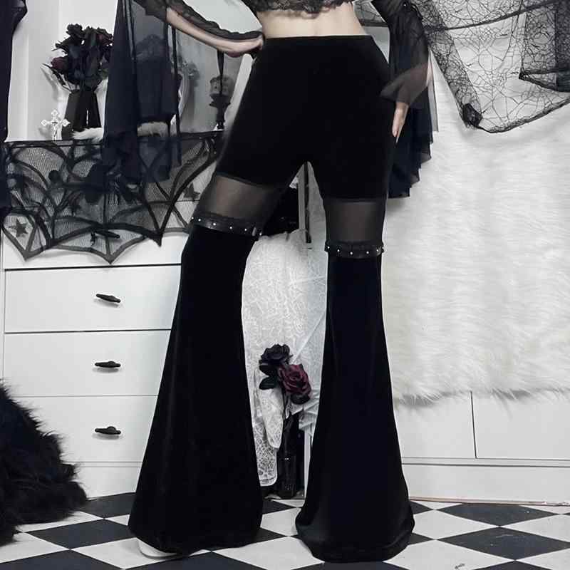 パンツ レディース 韓国絨 ポリエステル アラミド繊維 微フレアパンツ ハイウエスト ロングパンツ 黒 ストリート カジュアル スタイル