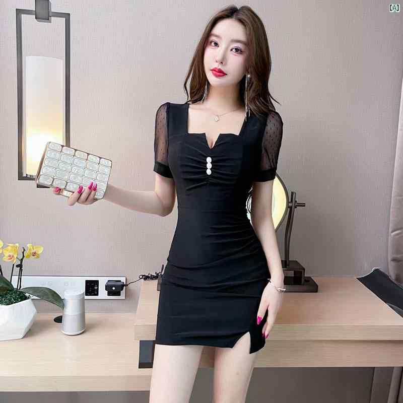 レディース 制服 ホットガールディープ v ブラック ショート Aラインイン イン 小柄 スリットヒップカバードレスナイトクラブ ktv 魅惑 的 削減
