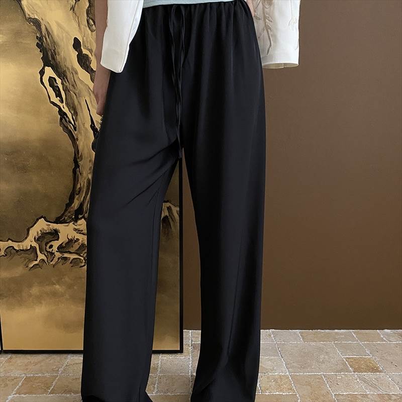 ウエスト レースアップ タック スウェット パンツ ボトム フルレングス レディース オールシーズン スエット ジャージ リラックスパンツ ストレート ゆったり 楽ちん スポーティー ストリート カジュアル トレンド 韓国ファッション