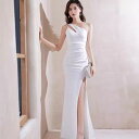 パーティードレス レディース 白 ワンショルダー ノースリーブ マーメイドライン ロング丈 上品 エレガント 高級感 セクシー 披露宴 二次会 謝恩会 演奏会 発表会 結婚式 お呼ばれ フォーマル