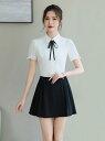 制服 レディース スクール風 ブラウス プリーツミニスカート セットアップ ホテル サロン 施術 業務 ユニフォーム 上品 エレガント 半袖 ポリエステル ホワイト 春夏