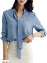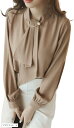 ブラウス 長袖シャツ エレガント ボウタイ フォーマル 上品 トップス オフィス 無地 リボン付き XL M グレーブルー ピンク ホワイト アプリコット L