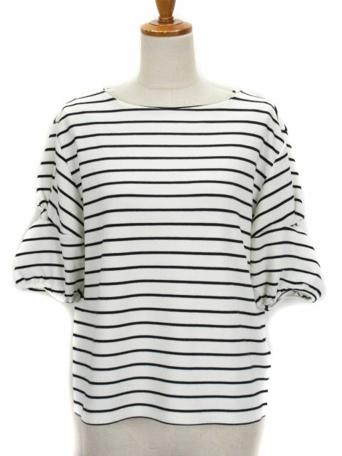 【中古】テチチ Te chichi ローズヒップオイルツイスト袖プルオーバー ボーダー F 白 ホワイト 黒 ブラック レディース 【ベクトル 古着】 230109