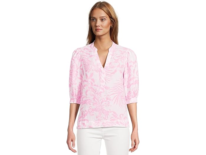 (取寄) リリー ピュリッツァー レディース ミアリー エルボー スリーブ リネン トップ Lilly Pulitzer women Mialeigh Elbow Sleeve Linen Top Rousseau Pink Glisten In The Sun