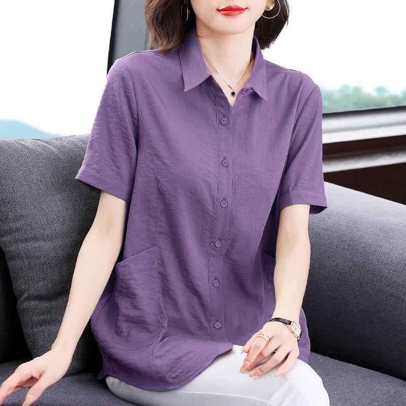 半袖 シャツ ブラウス レディース 女性用 夏物 夏服 新作 大きいサイズ ゆったりサイズ 襟付き ママ お母さん向け トップス カジュアル