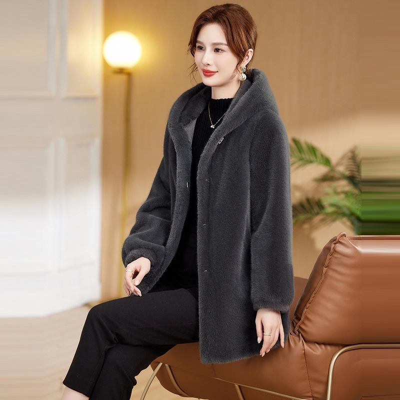 コート レディース 中高年 お母さん世代 秋冬 ミンク調フェイクファー ボア裏地 暖か 防寒 ミドル丈 エレガント 無地 ポリエステル ブラック コーヒー ダークパープル ダークグレー