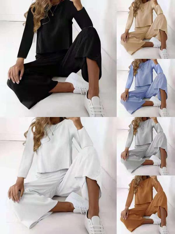 ・スタイル: OL通勤、エレガント・柄: 無地・カテゴリ: カジュアルセットアップ・上着の種類: Tシャツ・袖丈: 長袖・加工: 高温定形・主な素材: ポリエステル、麻混紡・カラー展開: ホワイト、ブラック、ブラウン、カーキ、ライトブルー、ライトグレー・サイズ展開: S、M、L、XL、XXL、XXXL・対象年齢: 25-29歳・対象性別: 女性