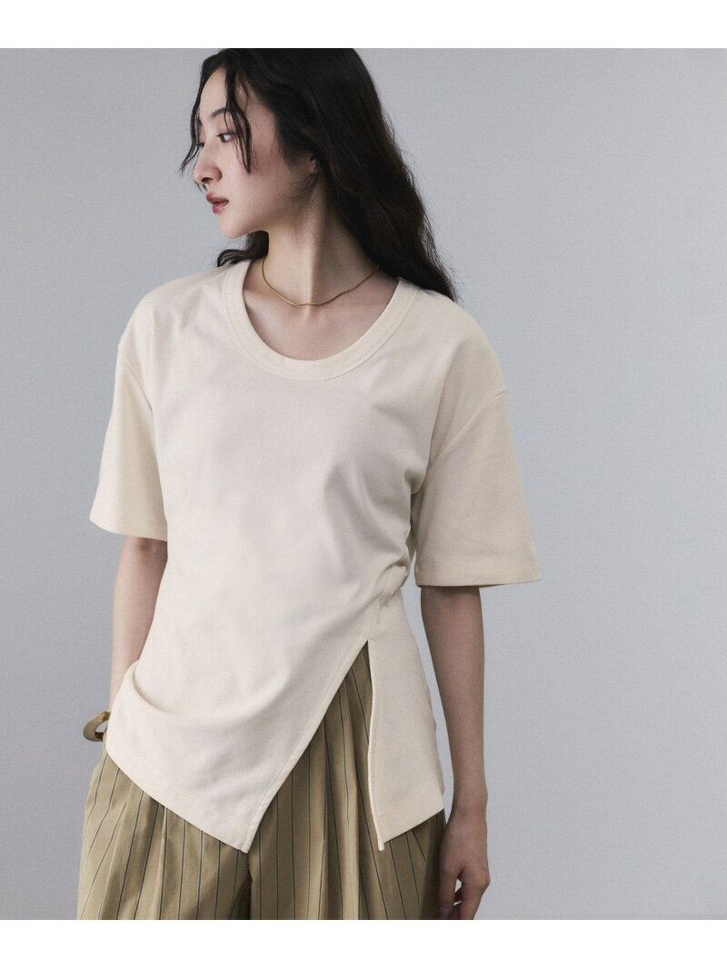 【予約商品について】 ※「先行予約販売中」「予約販売中」をご注文の際は予約商品についてをご確認ください。■重要なお知らせ※ 当店では、ギフト配送サービス及びラッピングサービスを行っておりません。ラッピング・ギフト配送について同時に複数の商品を注文された場合メーカー希望小売価格について置き配についてご利用ガイドADAM ET ROPE'(アダムエロペ)シェイプTシャツ《ウォッシャブル》程よい抜け感と肌触りの良いコットン素材で、暑い季節も快適に。女性らしいシルエットが飽きの来ないシェイプTシャツ◆2025-26秋冬◆ADAMETROPE'FEMME【Material】肌馴染みの良いコットンジャージー素材。【Design】バストには適度なゆとりをもたせたサイズで、ウエストをシェイプさせたメリハリのあるTシャツ。シェイプは締め付けすぎない女性の湾曲したカーブに沿ったサイズ設定に。程よく開いた襟ぐりと、片側のみに施した深めなスリットで抜け感をプラス。まだまだ暑い季節に、シンプルなTシャツに飽きた方へおすすめなデザインTシャツ。【Color】スタイリングに取り入れやすいブラック、柔らかいキナリ、青味がかったラベンダーの3色展開。【StylingPoint】シンプルにデニムやスラックスと合わせて。さり気ないデザインが、シンプルなスタイリングでもこなれた雰囲気を演出。---------------透け感:なし裏地:なし伸縮性:あり光沢感:なし生地の厚さ:やや薄手開き方:かぶりポケット:なし---------------◇モデル情報身長:164cmsize:F型番:GAM25150-18-099 PU1326【採寸】F/着丈64 | 肩幅50 | バスト103 | そで丈21 | ウエスト79商品のサイズについて【商品詳細】ブラック(01):中国|キナリ系(18):中国|ラベンダー(52):中国素材:ブラック(01):コットン 92% ポリウレタン 8%|キナリ系(18):コットン 92% ポリウレタン 8%|ラベンダー(52):コットン 92% ポリウレタン 8%サイズ:Fブラック(01):手洗い・漂白、タンブル乾燥禁止キナリ系(18):手洗い・漂白、タンブル乾燥禁止ラベンダー(52):手洗い・漂白、タンブル乾燥禁止※画面上と実物では多少色具合が異なって見える場合もございます。ご了承ください。商品のカラーについてこの商品はセール商品のため返品・交換対象外です詳細はこちら >>