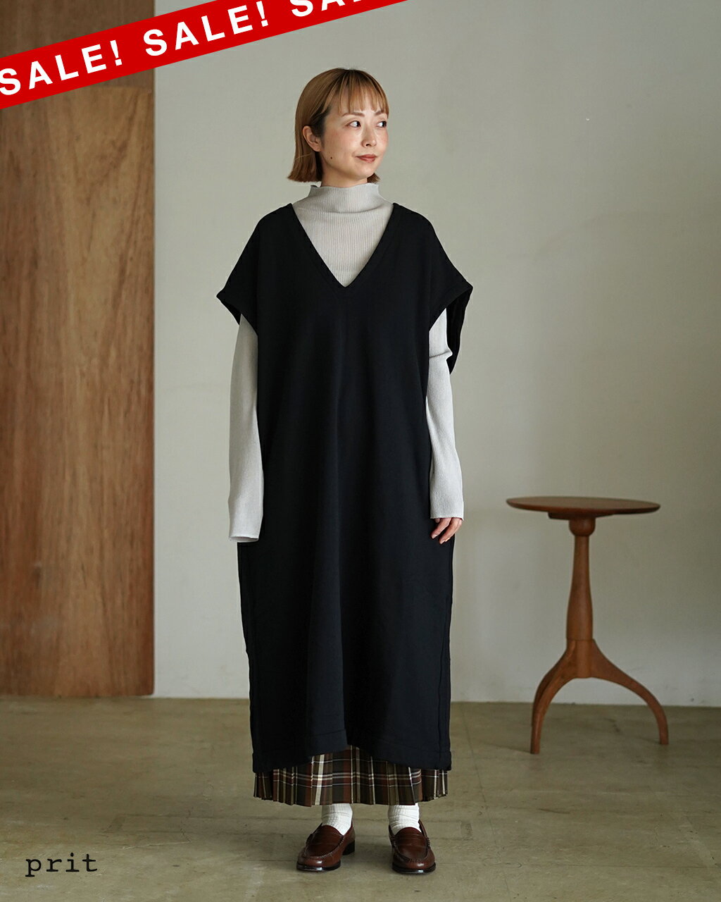 【SALE!40%OFF】プリット prit【Crouka別注】Vネック ワンピース V NECK ONEPIECE ブラック ブラウン グレージュ チャコール ネイビー ブルー レディース P904860924 xp10
