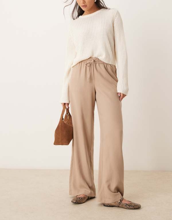 ヴィラ レディース ボトムス カジュアルパンツ ワイドレッグ パンツ VILA wide leg tie waist pants in tan and white pinstripe Savannah Tan タン