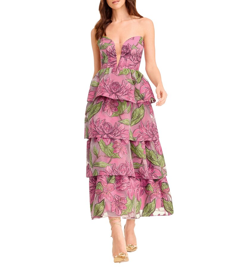 ドレスザポプレーション レディース トップス ワンピース ティアード フラワー柄 プリント フラワー Dress the Population Savannah Jacquard Floral Print Tiered Tea Length Dress Bright Fuschia フューシャ