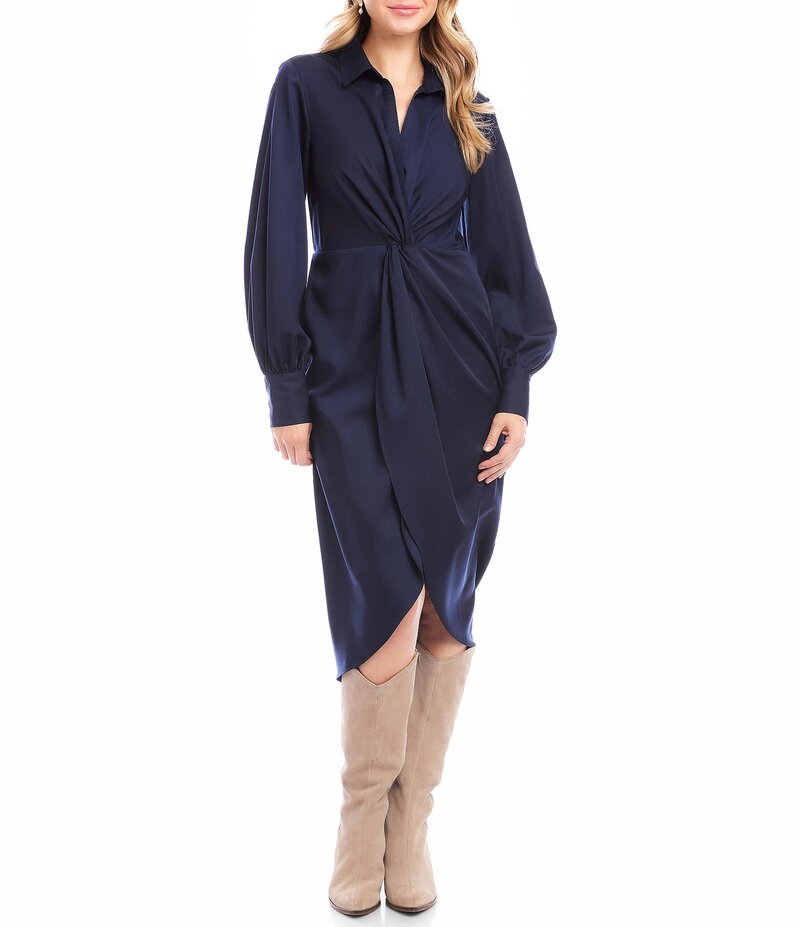 カレンケーン レディース トップス ワンピース ミディワンピース ミディ Tシャツ Karen Kane Savannah Sateen Collared Long Sleeve Twist Front Tulip Hem Midi Dress Navy ネイビー