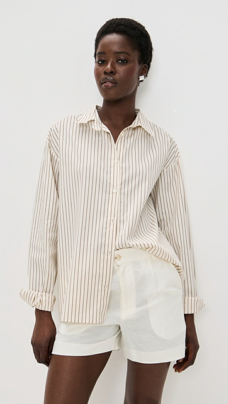 (取寄) シモネット ストライプ オーバーサイズ ブラウザ Simonett Stripe Oversized Blouse brown