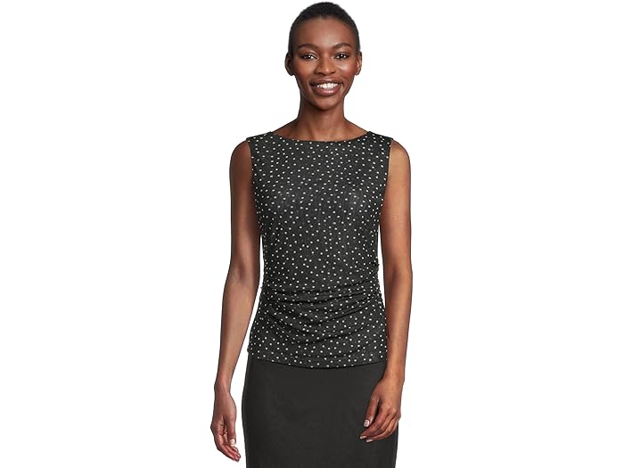 (取寄) カルバンクライン レディース スリーブレス メタリック スキューバ A-ライン Calvin Klein women Sleeveless Metallic Scuba A-Line Black Silver