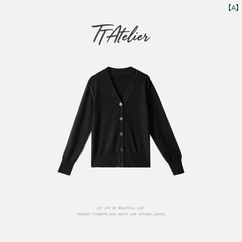 カーディガン セーター レディース TT 永遠の 夜 星 河 ブラック カジュアル スリム Vネック ウール ニットカーディガン ジャケット 秋 薄手