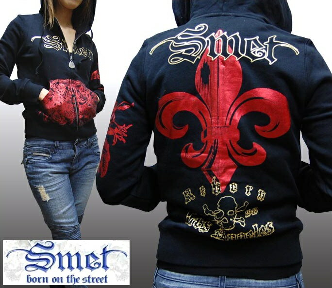 \店内全品ポイント11倍/ セール 送料無料 スメット レディース パーカー ユリ ブラック フーディー Smet トップス インポート ハリウッド カジュアル ストリート セレカジ エドハーディー Ed Hardy エドハーディ ブランド 海外 セレブ 多数着用 ロック